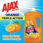 Details: Ajax Ultra Triple Action Orange Dish Liquid provides a pleasant and powerful cleaning experience with the lively scent of oranges while leaving your dishes sparkling clean. This product cuts grease to get dishes clean and spotless. This product also washes away bacteria on hands (when used as a handsoap, to wash away dirt and bacteria from hands, wash them for 20 seconds under clean running water) and fights odor on dishes. This dishwashing liquid is kosher and phosphate free. Purchase our dish soap dispenser bottles and refills in bulk to make sure you always have some on hand.