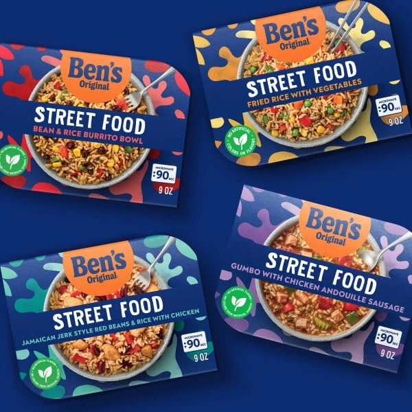 Details: When you’re craving a tasty and exciting entrée but don’t want to cook, our Street Food bowls have got you covered. BEN’S ORIGINAL Street Food Bean & Rice Burrito Bowl brings Mexican flavors with long grain rice and vegetables in a bean and rice bowl. Ready in just 90 seconds from the microwave, this Street Food dish is bursting with mouthwatering flavor from carefully chosen ingredients, including corn, black beans, poblano peppers, and tomatoes. This prepared entrée is great for an instant lunch, a quick dinner, or to pack for the office. No refrigeration is needed – just heat and serve! Explore the additional Street Food flavors to give your tastebuds what they crave.