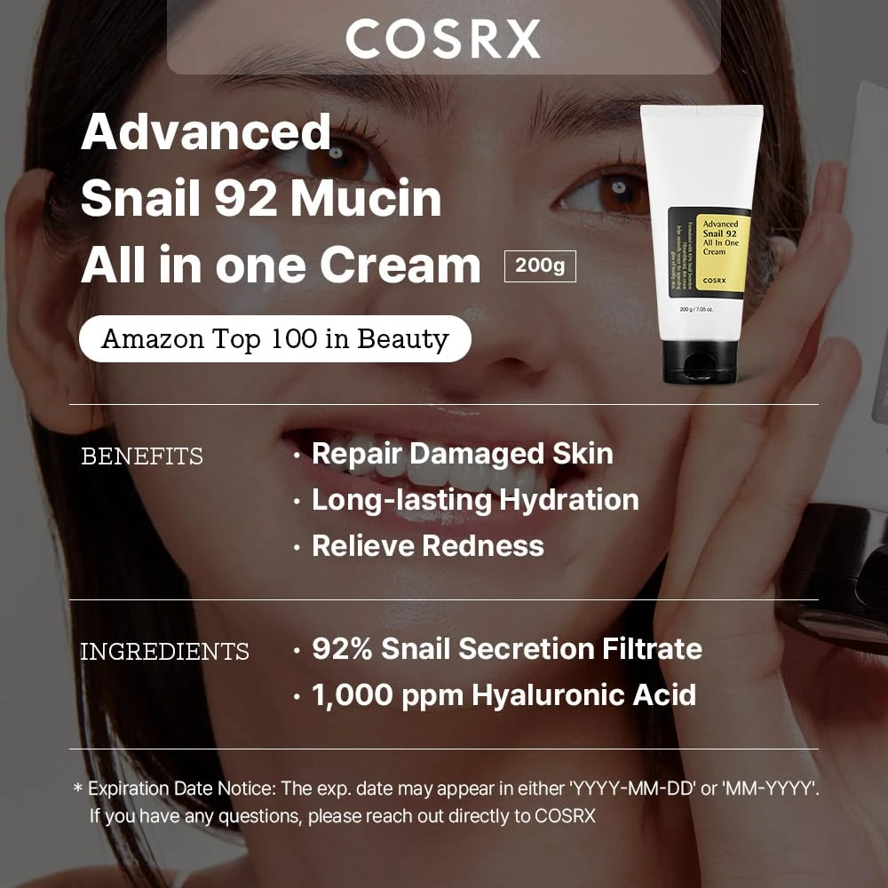 - Long-lasting Hydration: Infused with 92% of snail mucin (also called Snail Secretion Filtrate), this cream builds a moisture barrier to plump, hydrate, and soothes skin. This everyday multi-solution cream glides onto the skin and revives skin radiance.
