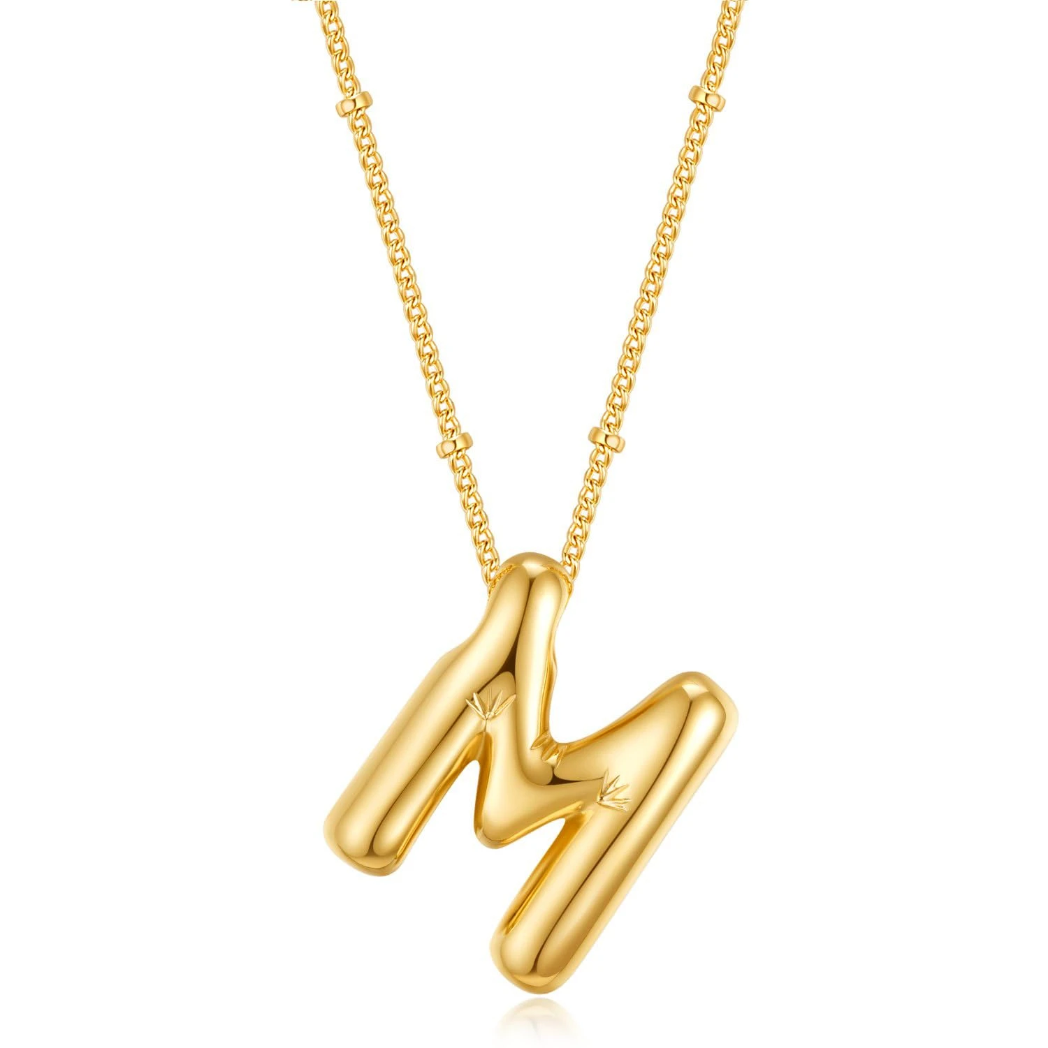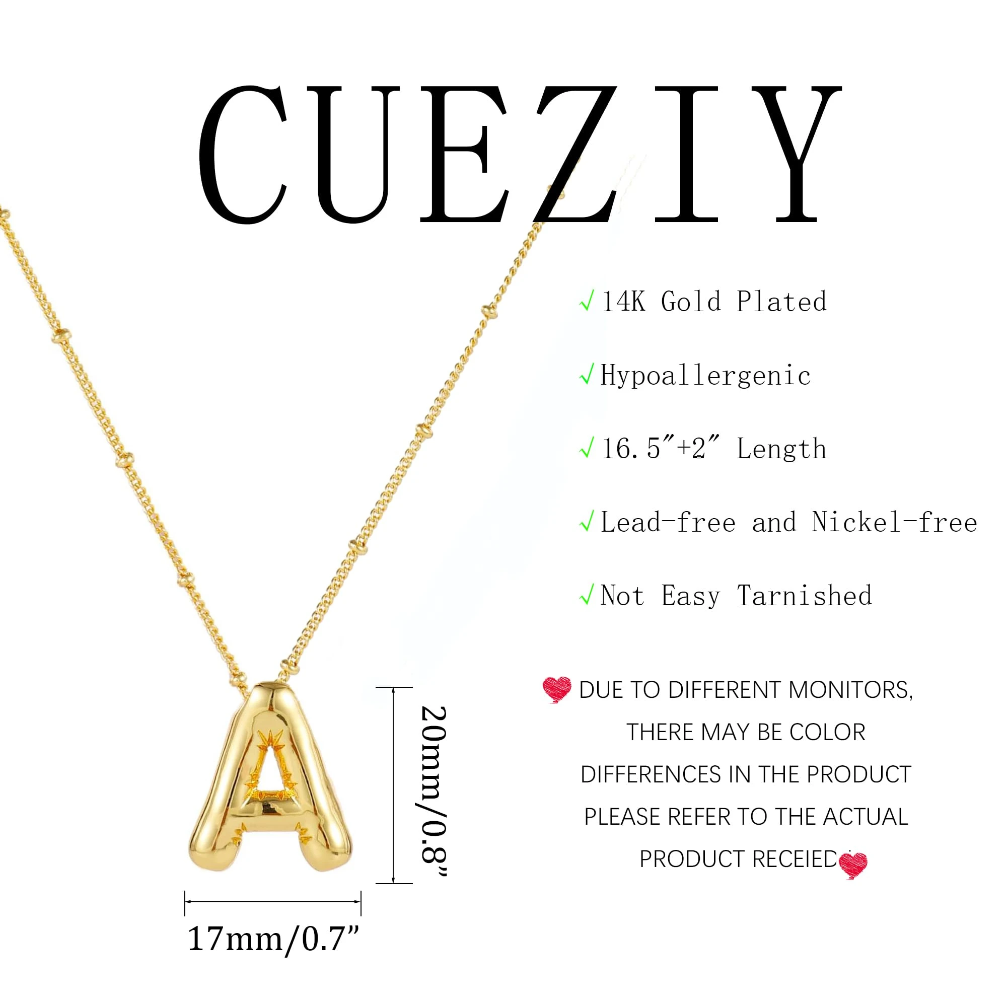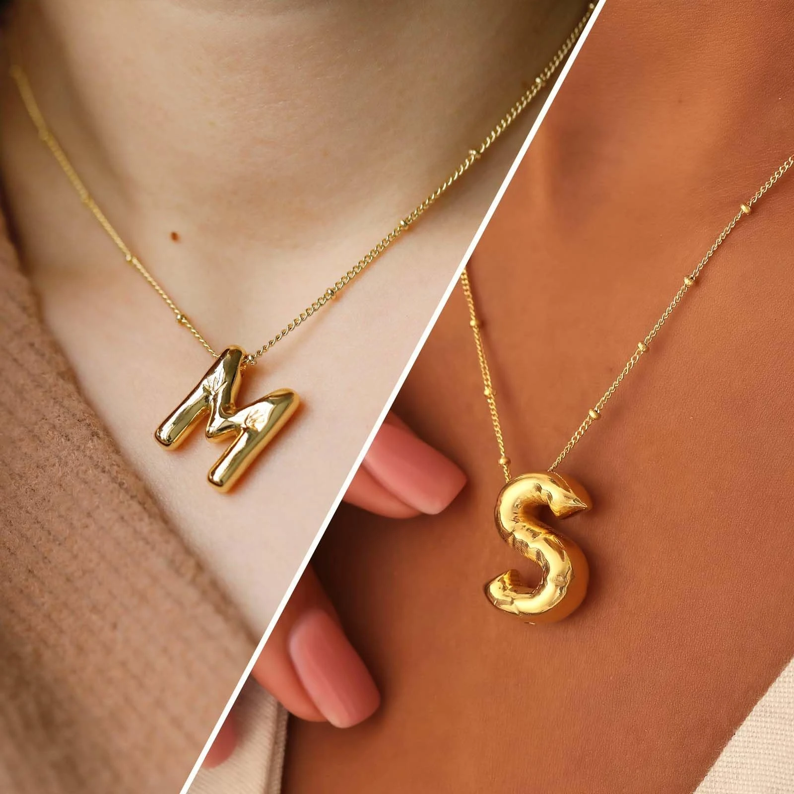 CUEZIY Bubble Gold Letter Necklace for Women Teen Dainty Balloon Initial Necklaces 14K Gold Plated Alphabet Pendant Necklace Personalized Trendy Jewelry Gift