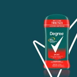 Details: Degree Men Sport Antiperspirant Deodorant delivers 48-hour sweat and odor protection to keep you feeling dry and fresh. This antiperspirant deodorant for men works as hard as you do and offers 48-hour protection, so you can take on the day. Our Sport Antiperspirant Deodorant features a zesty lemon, bergamot orange and a hint of musk scent. The powerful antiperspirant deodorant responds when you need it most, so you can stay confident without having to worry about slowing down. You can be confident you’ll be protected from sweat and odor by this antiperspirant for men. Stay fresh and feel clean from morning to night. Simply twist, glide and get moving. The refreshing, energizing scent helps to keep you as fresh as when you started your day. Stay dry, cool, and confident thanks to Degree Men Sport Antiperspirant Deodorant. At Degree, we want to inspire  the confidence in everyone to move more and go further. We’re here to support  your journey through an antiperspirant that moves with you and helps you go beyond your limits. As well as increasing our use of reusable materials, we’re making it easier for you to recycle our antiperspirant and dry spray packaging. Degree. It won’t let you down.