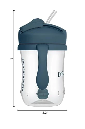 Details: Tip and sip in any direction! Dr. Brown’s Baby’s First Straw Cup simplifies the bottle-to-cup transition for you and baby. Designed with a soft, weighted straw, baby can drink from any angle – helping them transition from tipping the cup upside-down to sipping upright. Baby’s First Straw Cup features handles that lock in place to make it easy for little hands to hold. The cup is contoured, and the handles are removable, so it grows with baby as their cup-holding skills improve. The travel-friendly lid slides open for baby to drink and slides closed to keep the straw clean when not in use – plus it’s spill-proof! Comes in lots of fun colors and themes you and baby will love. All parts are removable for easy cleaning. Dishwasher (top rack) and sterilizer safe. Do not put in microwave. Straw cleaning brush included. 9 oz/270 mL, 2 Pack. BPA-free. 6m+.