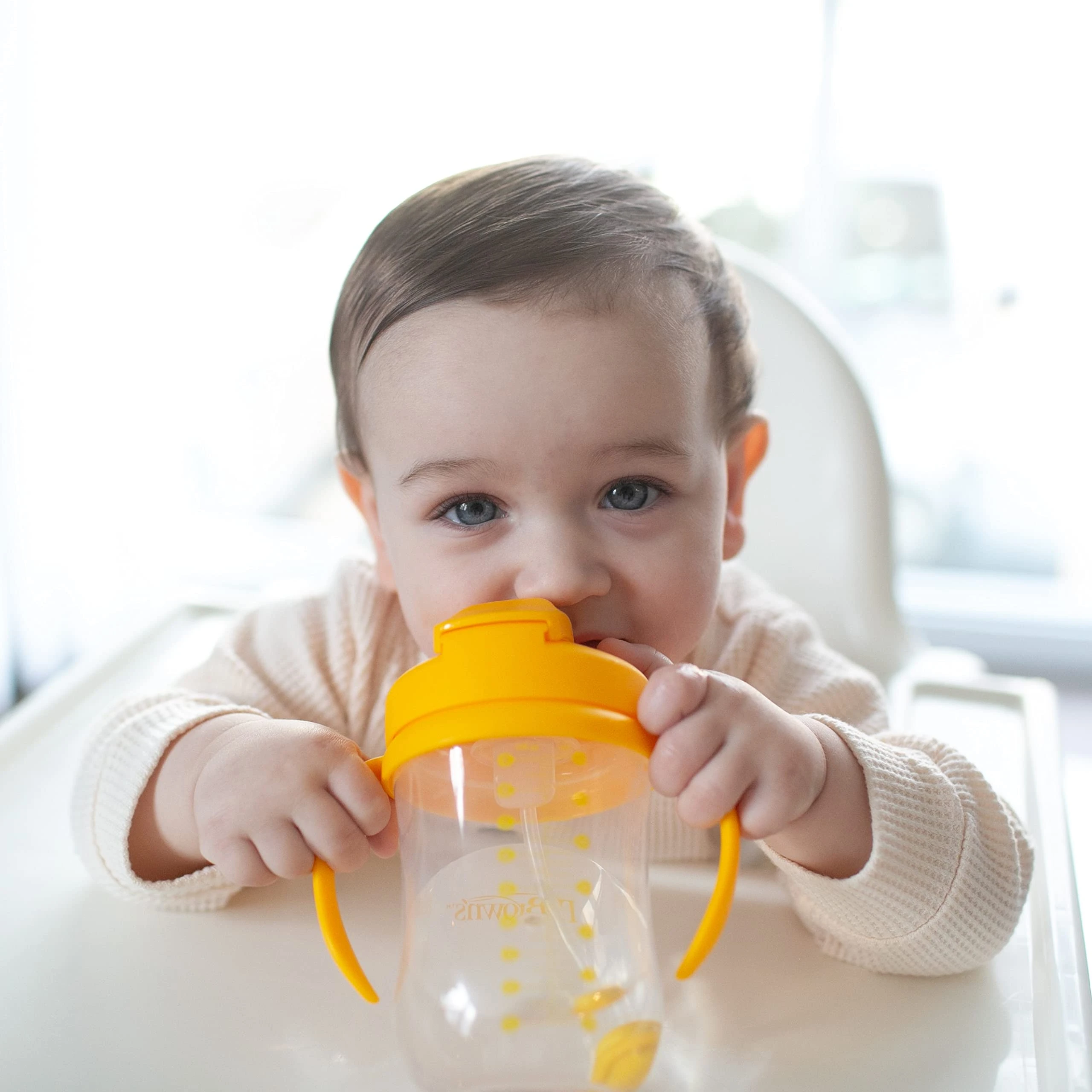 Dr. Brown’s Milestones, Baby’s First Straw Cup Sippy Cup with Straw, 6m+, 9oz/270ml, 2 Pack, Dark Blue & Vintage Yellow, BPA Free
