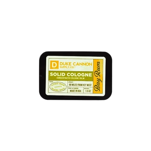 Details: Duke Cannon Supply Co. Solid Cologne for Men Bay Rum (Citrus Musk, Cedarwood, Island Spice) – Concentrated Balm, Travel-Friendly Convenient Tin, Made with Natural & Organic Ingredients 1.5 oz (1 unit)