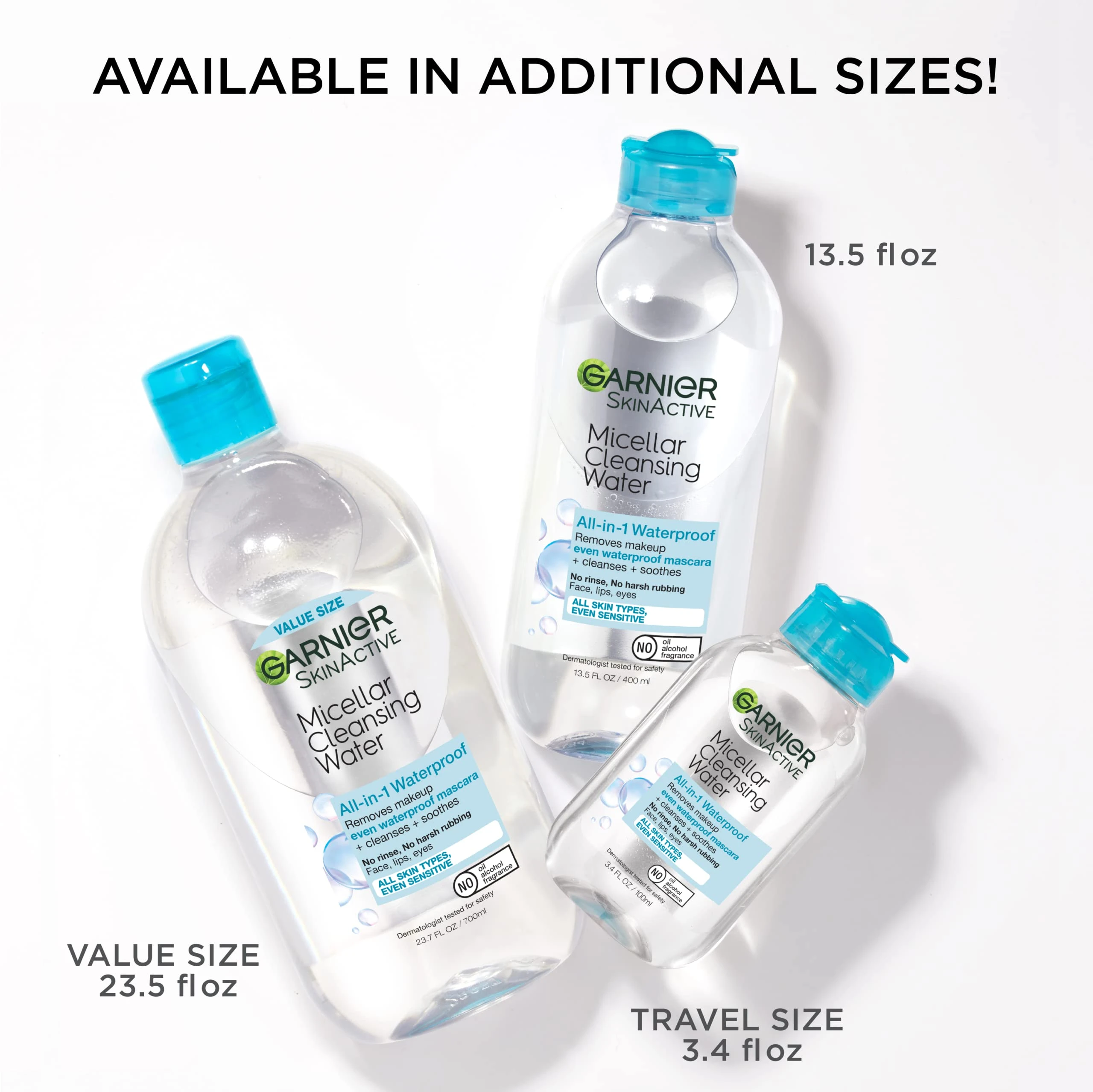 Garnier Micellar Water For Waterproof Makeup, Hydrating Facial Cleanser & Makeup Remover, Suitable for Sensitive Skin, Vegan, Cruelty Free, 13.5 Fl Oz (400mL), 1 Count