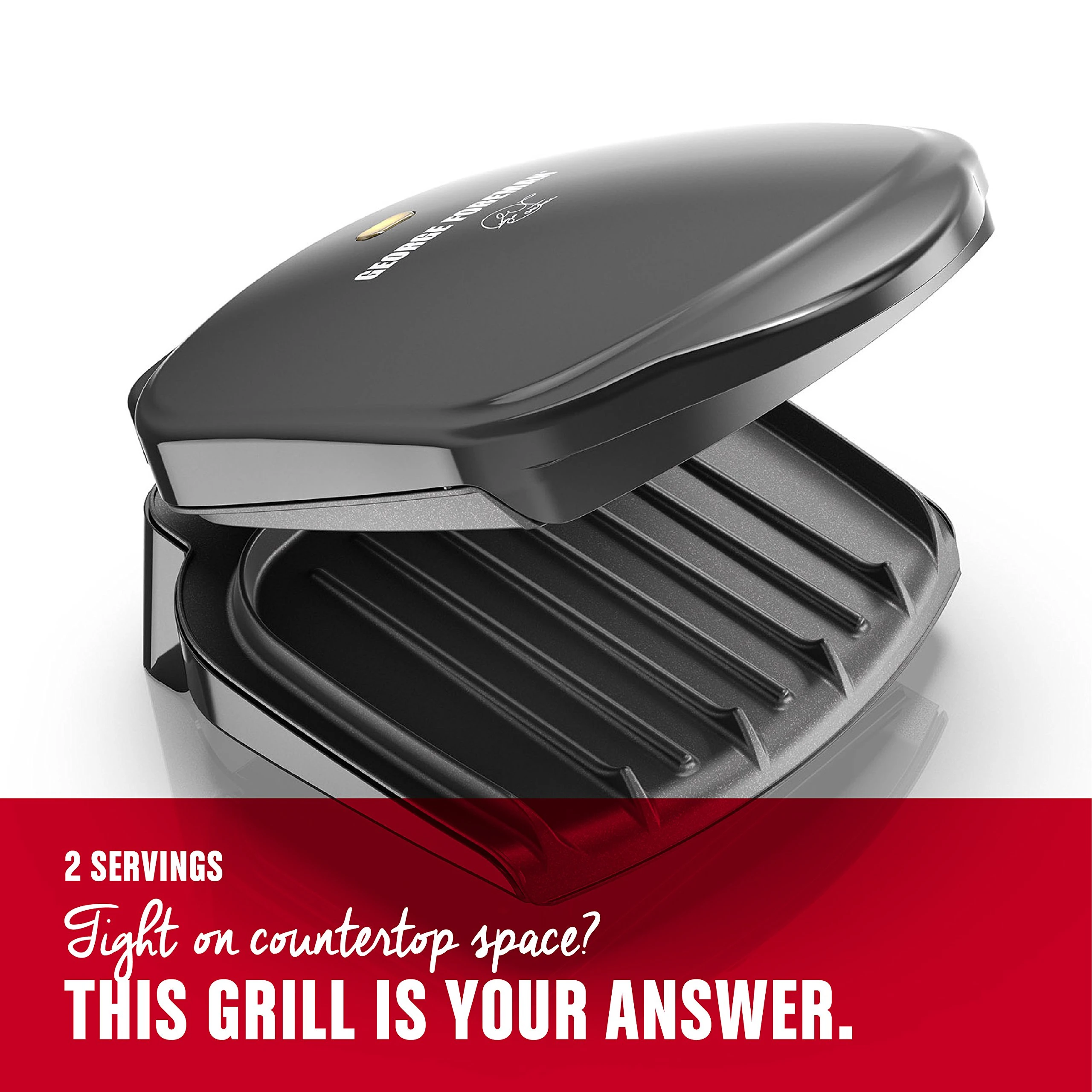 Details: It’s the kitchen appliance that changed the grilling game forever. The George Foreman 2-Serving Classic Plate Grill and Panini Press delivers fast grilling and delicious results for steak, burgers, chicken, veggies, and more. The proprietary sloped surface helps remove fat during cooking, and the George Tough nonstick coating wipes clean after every use. The compact grill’s dual contact heating speeds up grilling to get food on the table in record time. What will you make on your George Foreman Grill? *from 1/4lb. uncooked 80/20 ground chuck