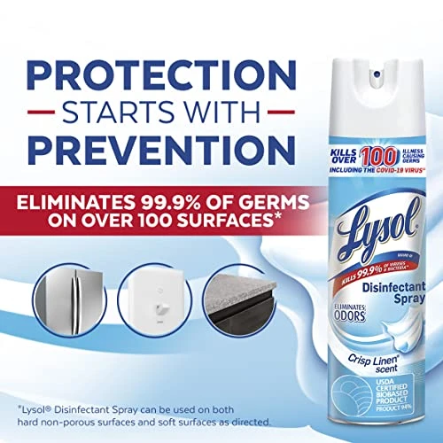 Lysol Disinfectant Spray, Sanitizing and Antibacterial Spray, For Disinfecting and Deodorizing, Crisp Linen, 19 Fl. Oz (Pack of 2)