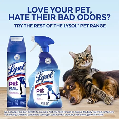 - INSTANT ODOR REMOVAL: Lysol Pet Odor Eliminator Spray contains odor removal technology to neutralize unpleasant odors from pet messes; leaving behind nothing but a fresh scent. EPA Reg #777-127.