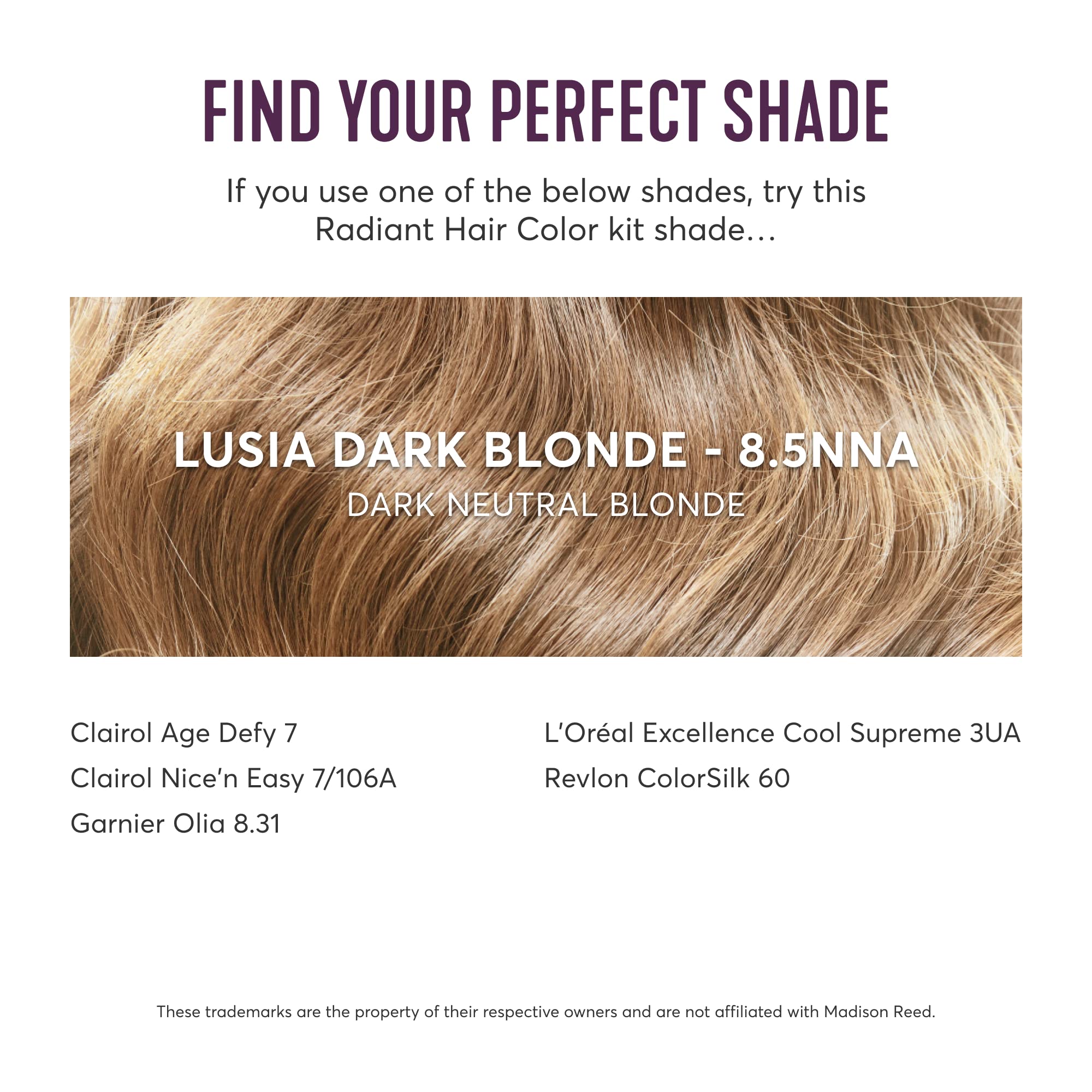 Madison Reed Radiant Hair Color Kit, Dark Neutral Blonde for 100% Gray Coverage of Resistant Gray Hair, Ammonia-Free, 8.5NNA Lusia Dark Blonde, Permanent Hair Dye, Pack of 1