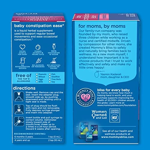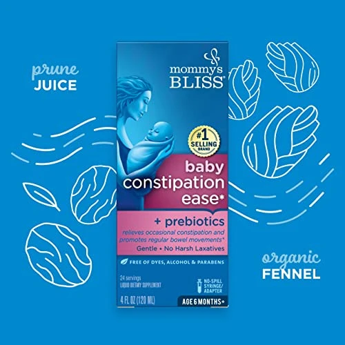 Mommy’s Bliss Constipation Ease + Prebiotics, Relieves Occasional Constipation, Gentle & Safe, No Harsh Laxatives, 4 Fl Oz Bottle (Pack of 1)