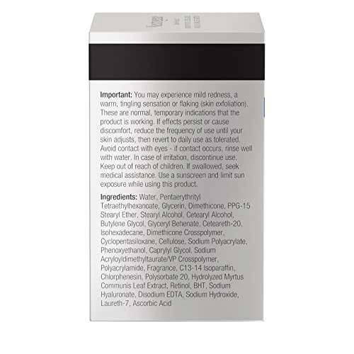 Details: Neutrogena Rapid Wrinkle Repair Retinol Regenerating Cream delivers our uniquely stabilized retinol deep within skin’s surface to quickly fight the signs of aging & regenerate the look of skin. The deep moisturizing face cream helps improve the look of fine lines, dullness, wrinkles & dark spots. Contains retinol, a dermatologist-proven form of vitamin A & powerful ingredient that fights fine lines, dullness, wrinkles & dark spots, & hyaluronic acid, which adds plumping moisture to help hydrate & rejuvenate the look of skin. Instantly hydrates for smoother skin & smooths the look of fine lines & reduces the look of dark spots in just one week. Regenerating Retinol Cream is suitable for daily use & is formulated without parabens, mineral oil & dyes.