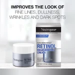 - 1.7-ounce jar of Neutrogena Visible Repair Retinol Regenerating anti-age face & neck cream moisturizer with hyaluronic acid. Your Rapid Wrinkle Repair just got upgraded, now featuring a soothing complex