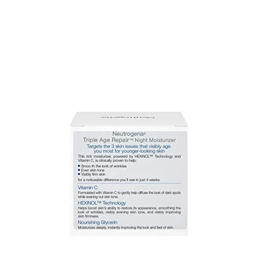 - 1.7-ounce jar of Neutrogena Triple Age Night Facial Moisturizer with Vitamin C & Glycerin deeply moisturizes and targets three common skin issues that age you the most—wrinkles, uneven tone and firmness