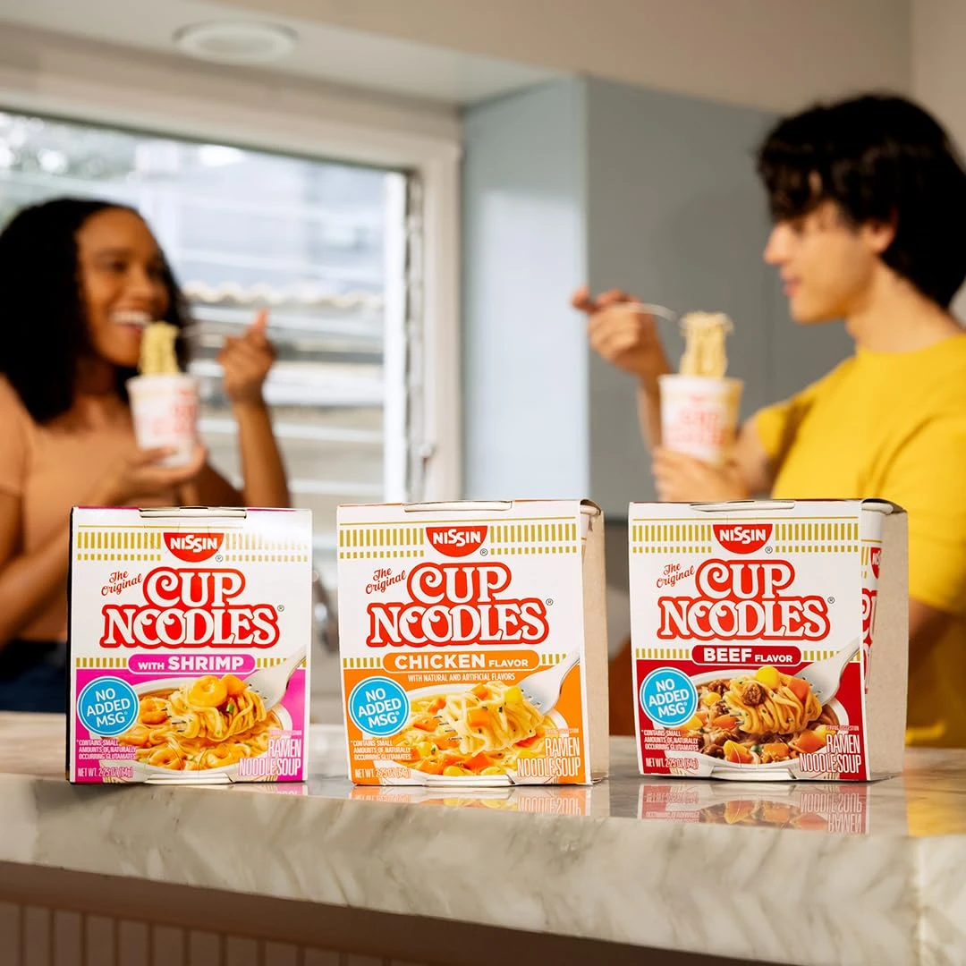 Nissin Cup Noodles Soup, Beef Flavor, Microwaveable Paper Cups, Instant Ramen, 2.25 Ounce (Pack of 12)