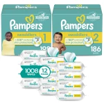Pampers Baby Diapers and Wipes Starter Kit, Swaddlers Disposable Sizes 1 (198 Count) & 2 (186 Count) with Sensitive Water Based 12X Multi Pack Pop-Top Refill (1008 Count)