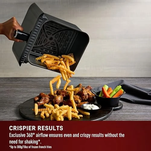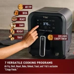 Details: Elevate your cooking with the t-fal infrared compact air fryer’s, designed with cutting-edge infrared technology. This air fryer mimics the nostalgic flavors of open-fire cooking while providing juicier and more flavorful food. With a carbon fiber heating element reaching up to 750f in just 45 seconds, the t-fal air fryer offers instant heat-up without the need for preheating. Enjoy versatile cooking with 7 programs including air fry, broil, roast, bake, reheat, toast, and the exclusive crispy finish function that adds a delectable crunch to your dishes. The airfryer’s no-shake technology, utilizing t-fal’s innovative infra-heat air-flow design, provides even cooking throughout, eliminating the need for basket shaking mid-cook. Monitor meals through the always on lighted window for great results. With a 6qt air fryer capacity, you can easily prepare a full meal or roast a whole 3 lb chicken, making it ideal for both families and entertaining. The ptfe nonstick basket makes for easy food release and cleaning, while the sleek black design complements any modern kitchen. Operating at 1550w, this big air fryer efficiently cooks with minimal oil, promoting healthier eating by reducing calorie and fat intake without sacrificing taste.