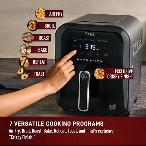 T-fal Infrared Air Fryer: 6 qt Digital Touch Screen, 7-in-1 Cooking Functions, 45-Seconds to reach 750°F on carbon fiber heater surface, No-Shake Technology, Crispy Finish, 1550W, Black
