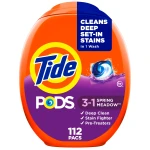 Details: Discover the effortless, powerful clean of Tide PODS laundry detergent pacs, designed to work on 100% of common stains, even in cold water. With a 3-in-1 concentrated formula that combines stain removers, odor fighters, and color protectors, you get exceptional cleaning performance in just one simple step. Tide PODS laundry soap dissolves quickly, activating stain removal and odor fighting in any wash temperature. Say goodbye to grease stains and hello to fresh, vibrant laundry with America’s #1 trusted laundry brand*. Don’t pay for water, pay for clean. Tide PODS laundry soap is concentrated with 3X cleaning ingredients per dose compared to leading bargain liquid detergent, ensuring you get the most out of every load. Just toss Tide PODS laundry soap into the drum before adding clothes, it’s that easy For larger or heavily soiled loads, simply add another Tide POD. Transform your laundry routine with the long-lasting, springtime freshness of Tide Spring Meadow scent. Get the clean you love, effortlessly in 1 wash with Tide PODS, your 3-in-1 laundry solution. Experience the power of Tide today Please keep Tide PODS stored out of reach of children and pets. *Voted most trusted laundry brand by American shoppers based on the 2025 BrandSpark American trust survey.