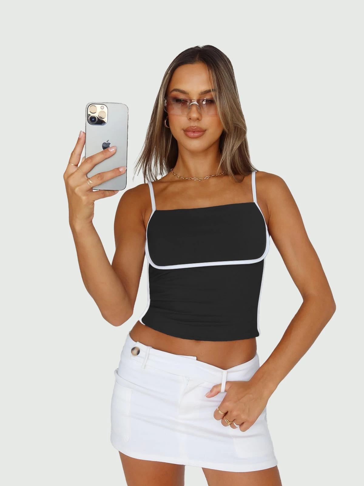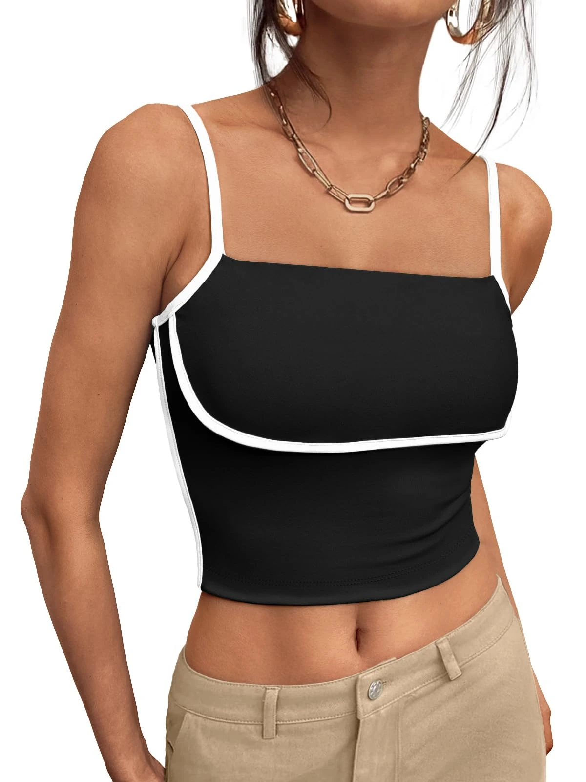 Trendy Queen Womens Camisole Tube Tops with Adjustable Spaghetti Strap Cute Summer Going Out Crop Tops 2025 Black S