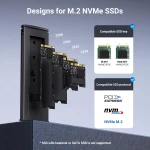 - Broad Compatibility: The UGREEN M.2 NVMe SSD enclosure is specially designed to support NMVe protocol M/B&M keys and for 2230/ 2242/ 2260/2280 size SSDs up to 8TB. The M.2 NVMe enclosure is applicable for Windows, Mac OS, Linux, Android, IOS systems.(Does not support SATA NGFF SSD or mSATA SSD)