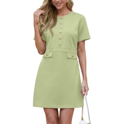 GRECERELLE Women’s Summer Short Sleeve Button Crew Neck Elegant Business Work Bodycon Mini Short Dresses Avocado Green, Medium