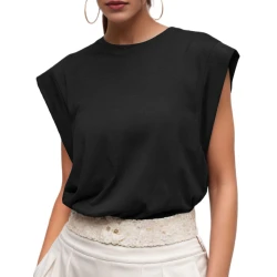GRECERELLE Womens 2025 Summer Cap Sleeve Casual Basic Tops T-Shirts Loose Crew Neck Tank Fashion Clothes, Black, Large